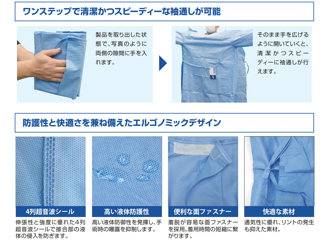 ●ワンステップで清潔かつスピーディーな袖通しが可能
