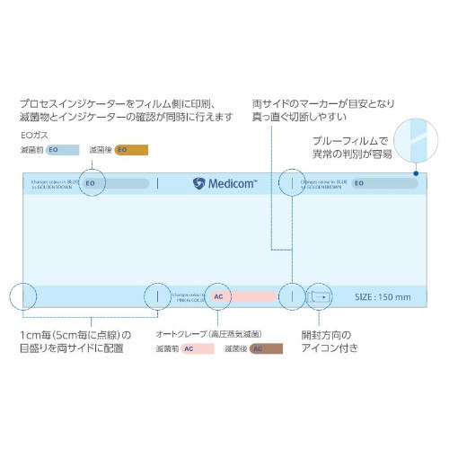 滅菌包装の国際規格(ISO 11607, EN 868 など)に適合しています。