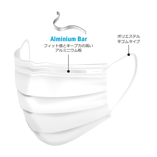 ノーズピース:アルミニウム板、イヤーループ:伸縮性ポリエステル