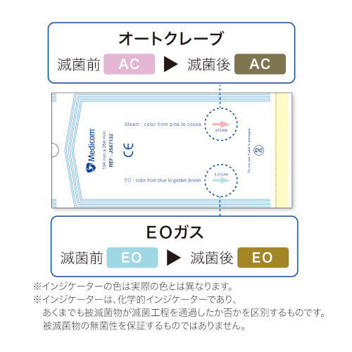 ●Type1のプロセスインジケータ付きで滅菌工程の通過を確認できる滅菌バッグです。