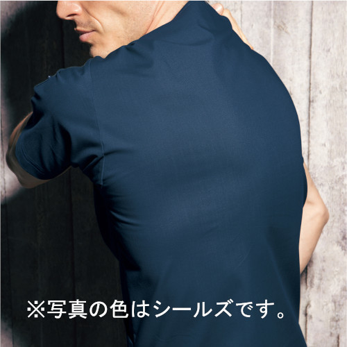 襟元と袖はイエローのアクセントを効かせたオシャレなリブ仕様にすることで、ディッキーズらしいカジュアルなデザインのスクラブにしました。