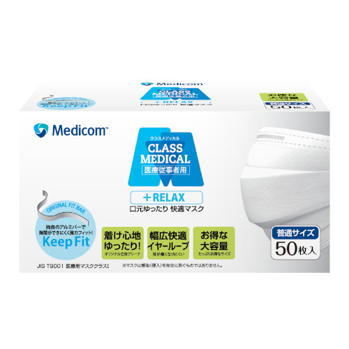 ●JIS T 9001 医療?マスク クラスT適合マスクで、上下に開く立体プリーツなので、口元が快適です。