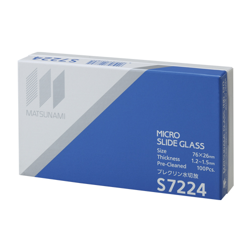 ●フロスト加工:スライドグラス一端にスリ状の加工を施し、えんぴつで書くことができます。染色液や溶剤に浸しても消えません。