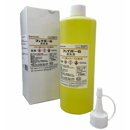 ●染色液B サフラニン:0.25%サフラニン溶液・脱色液で脱色されたあと染色として鮮紅色の塩基性色素で明るい紅色に染まります。