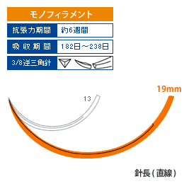 PDP423H 3/8逆三角針 19mm 3-0 クリヤー 70cm 1箱(36袋)