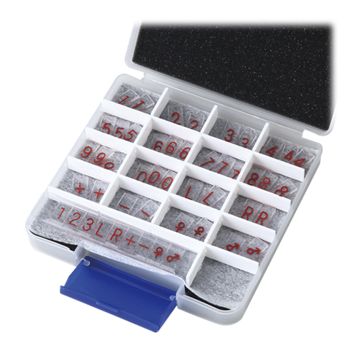 ●英字タイプ:A〜Z、0〜9、♂、♀、+、-/各3枚(計120枚)、マークホルダー付、縦10×横20×厚さ1.8mm