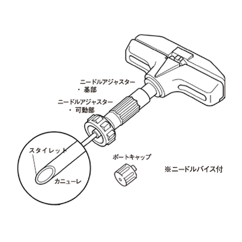 ●ニードルアジャスターは取り外せます。回転させて針長の調整も可能です。